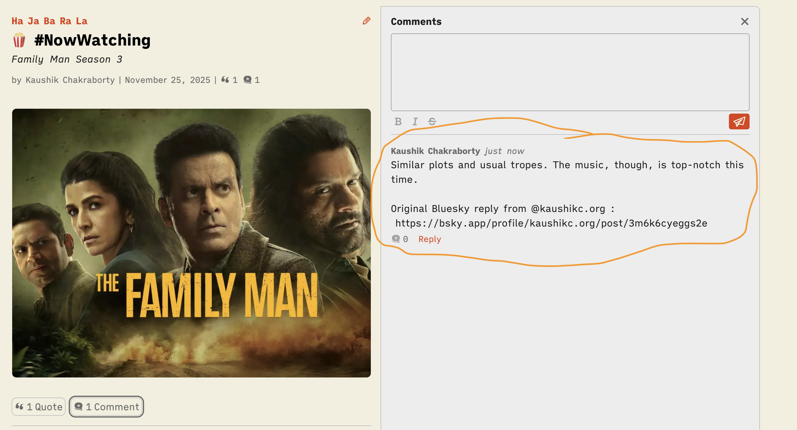 I am trying to ensure that all my social activities are driven via AT Protocol. That way, I know where my data resides. Now, to move the published data to various app views requires either the publishing platform providing a specific feature or one's programming skills. I chose the latter.